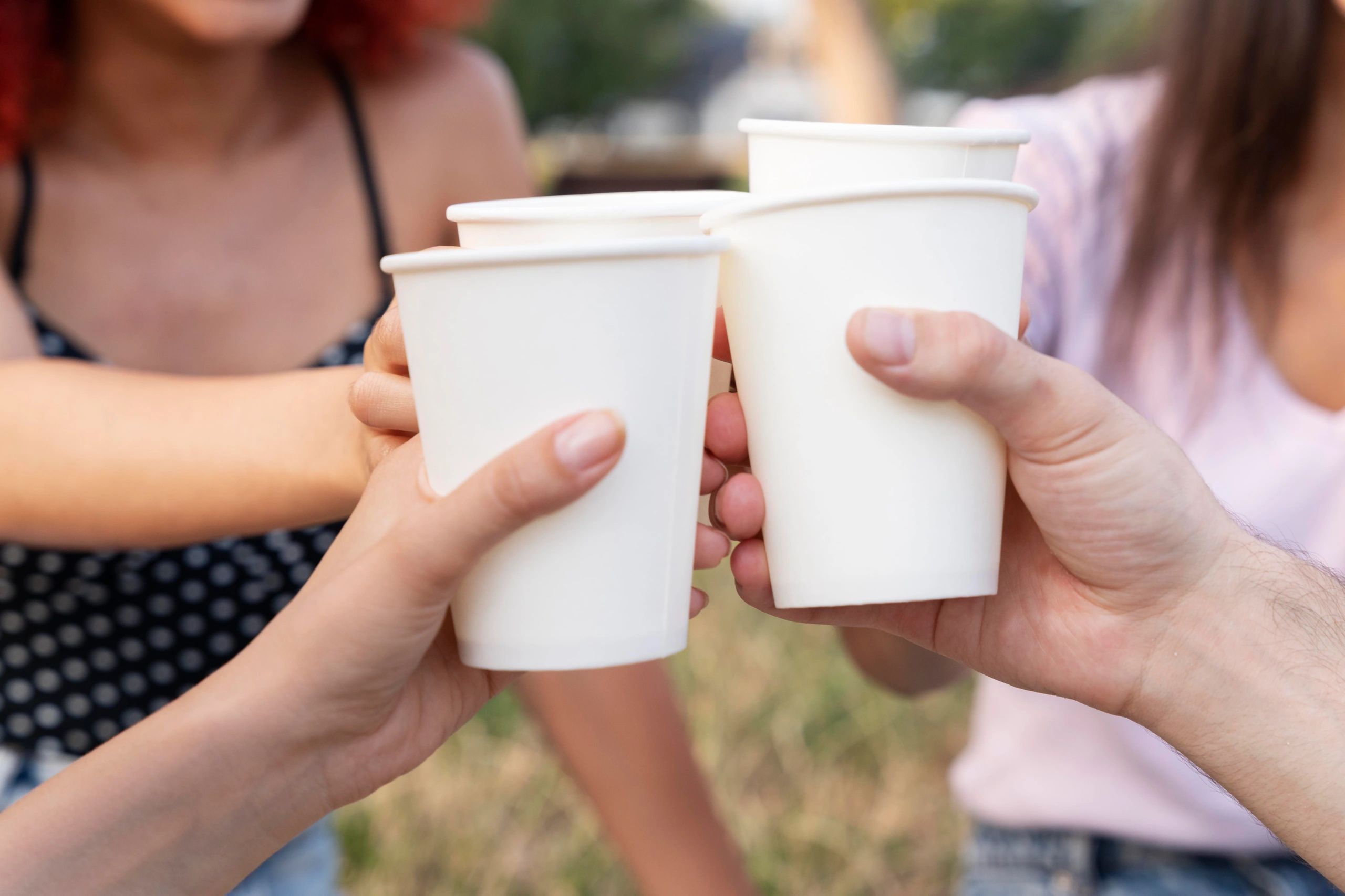 Vasos de cartón, para bebidas calientes, en variedad de diseños, de 8, 12 y 16 onzas, con tapadera negra con cierre